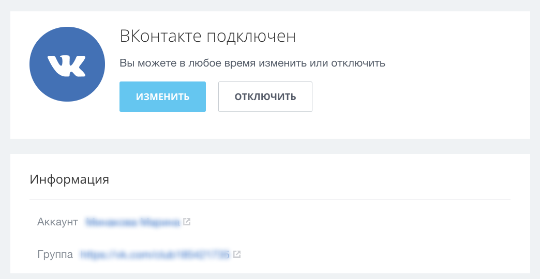 Подключите публичную страницу, группу или страницу мероприятия ВКонтакте.